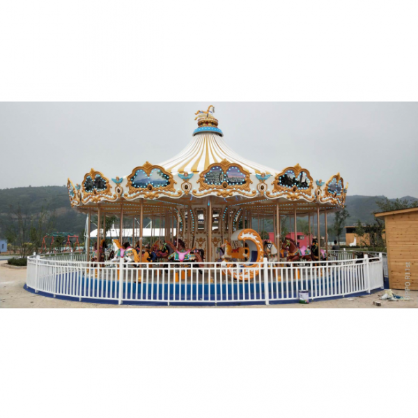 This carousel amusement machine has a novel appearance and brilliant colors. It is very popular for teenagers. After it is started, the carousel rotates at a constant speed, and the carousels of different shapes undulate up and down, giving the riders the feeling of riding the horse and galloping on the battlefield. This product is suitable for parks, playgrounds, children’s palaces, life squares, communities and other densely populated places. The main body is made of steel and the horses are made of glass fiber reinforced plastic. It has the characteristics of environmental protection, safety, corrosion resistance and good stability.