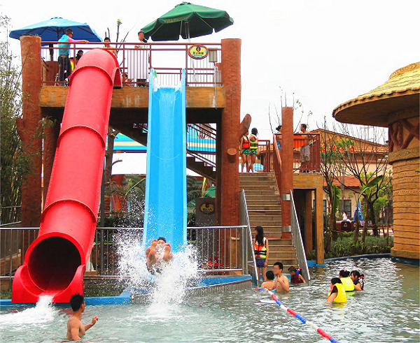 The freefall water slide does not require any resistance. Riders fall rapidly under the action of their gravity, almost vertically, allowing tourists to reach the bottom of the nearly 20-meter slide in a few seconds. When tourists enter the open The straight dive section stirs up splashes of water all the way, allowing visitors to fully experience the thrill of high-speed free fall.