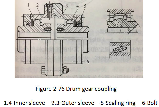 ①Flexible coupling without elastic element. The components of this type of coupling are relatively movable, so they can compensate for the relative displacement between the two shafts, but because there are no elastic elements, they cannot buffer and reduce vibration. Figures 2-74 to 2-78 show several typical flexible couplings with no elastic elements.
